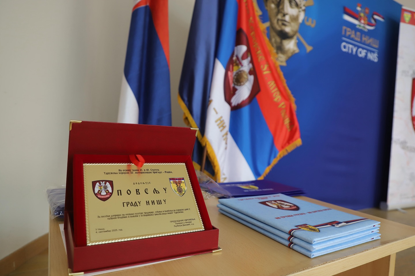 Граду Нишу је овом приликом уручена повеља као захвалност што чува сећање на херојску бригаду.